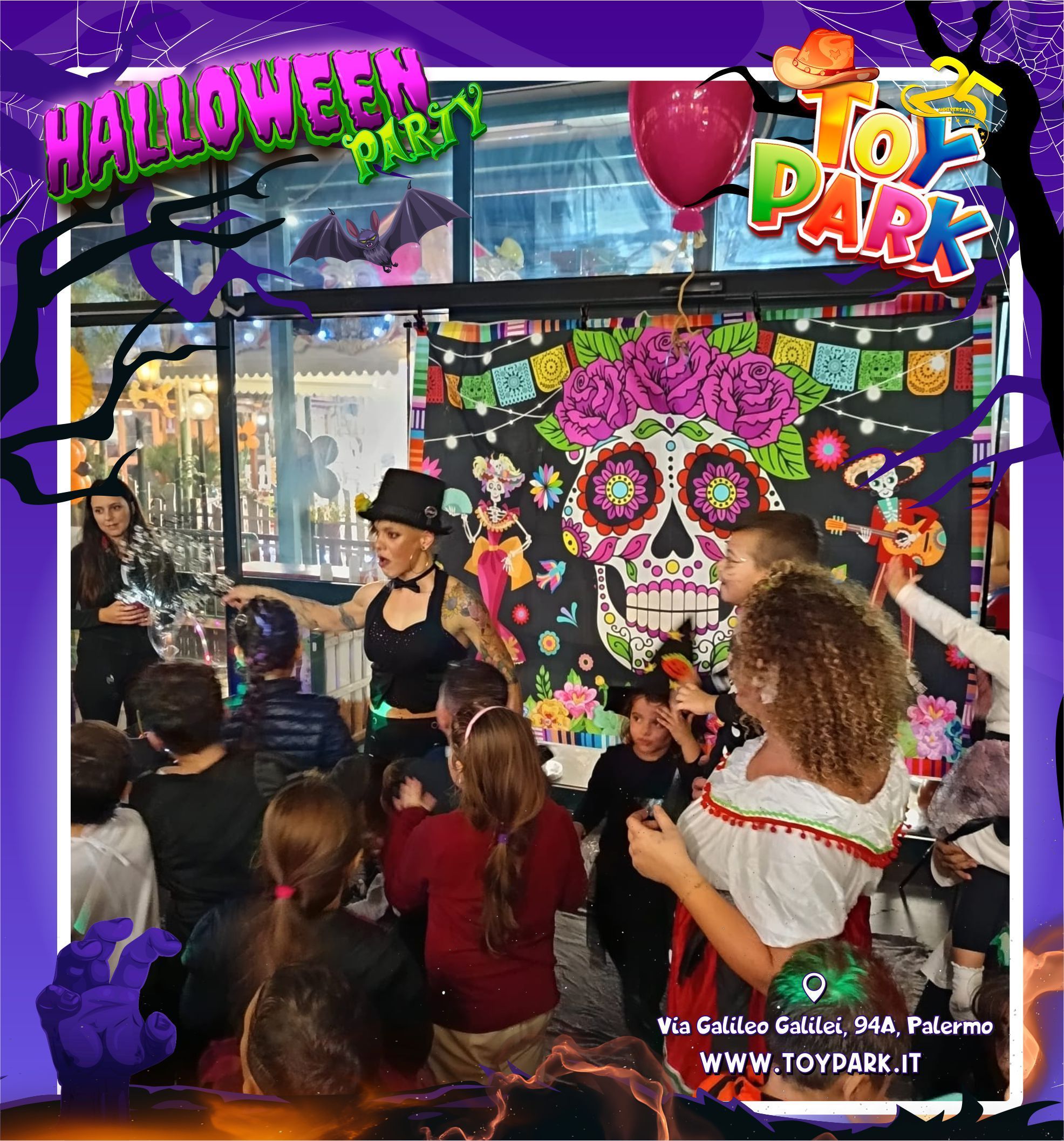 #ToyParkPalermo #HalloweenParty #GibaEMimi #CircusShow #HalloweenPerBambini #PalermoConBambini #EventiPerFamiglie #BimbiFelici #GiochiAlToyPark #Cinema6D #FestaInMaschera #HalloweenPalermo #ToyParkExperience #FamiglieInFesta #DivertimentoInSicurezza