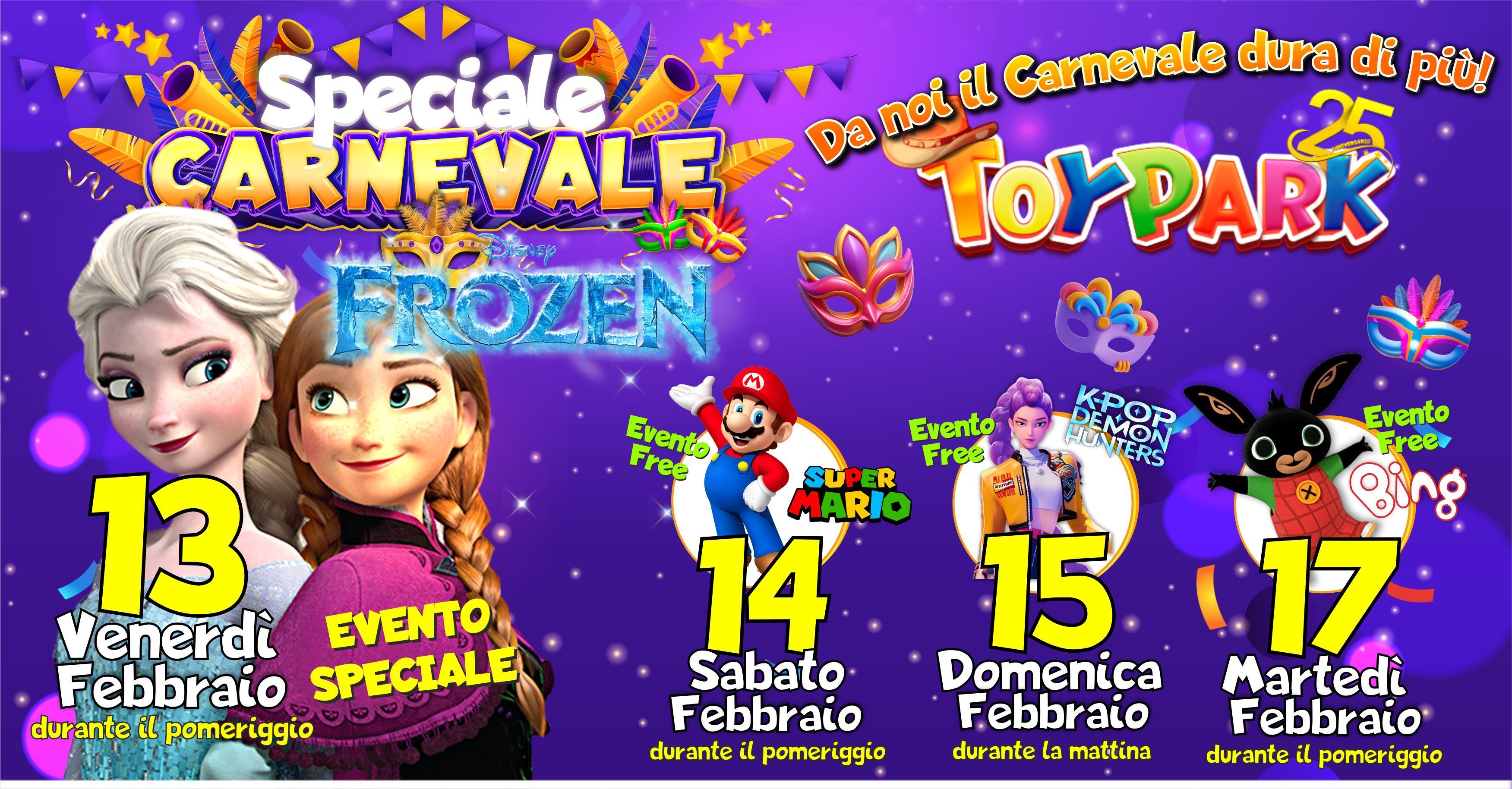 #ToyParkPalermo #CarnevaleAlToyPark #Carnevale2026 #FrozenEvent #SuperMarioPalermo #BingLive #KpopDemonHunters #BimbiFelici #PalermoConBambini #EventiPerFamiglie #FesteInMaschera #GiocaConNoi #DivertimentoAssicurato #ToyParkExperience #MaschereEGiochi #AnimazioneBambini